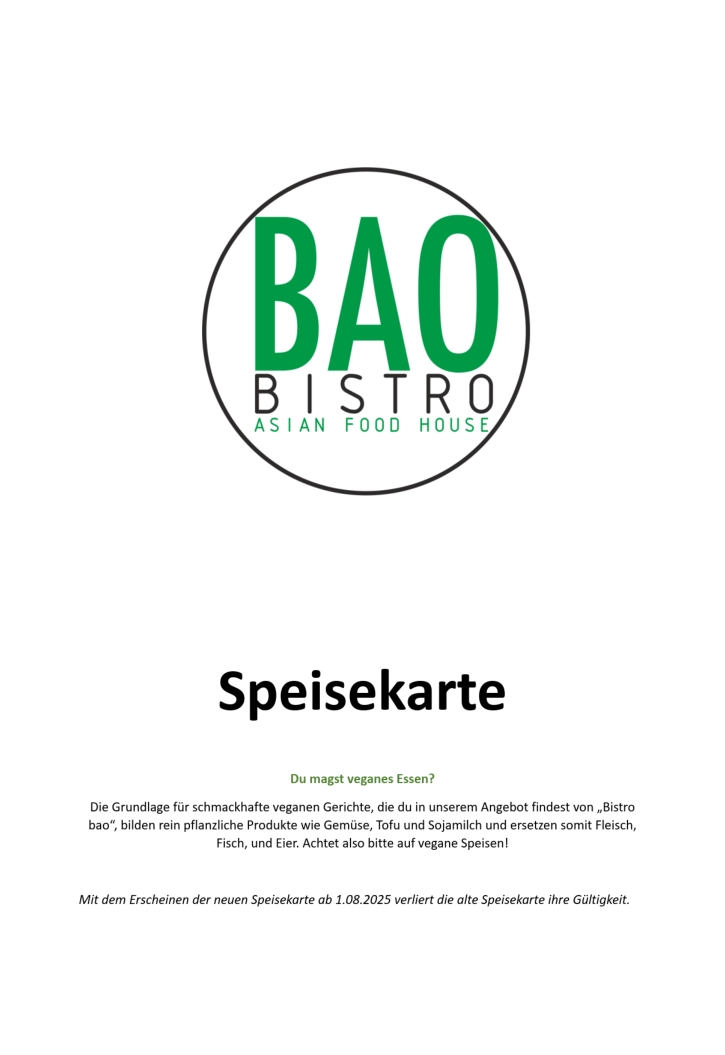 Mit dem Erscheinen der neuen Speisekarte ab 1.08.2025 verliert die alte Speisekarte ihre Gültigkeit.